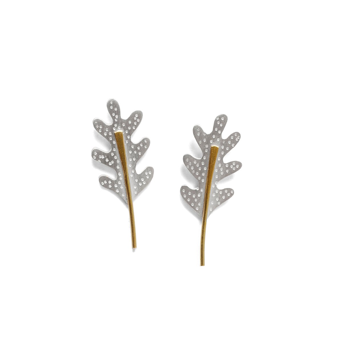 Little silver stud oak leaf earrings inspired by native oak tree leaves. The earrings are handmade from silver with brass stems. These earrings have been hand punched with tiny textured dots. The earring posts are made from solid silver and come with silver scrolls. A perfect Spring gift. These earrings are also available in oxidised silver and dangly versions.